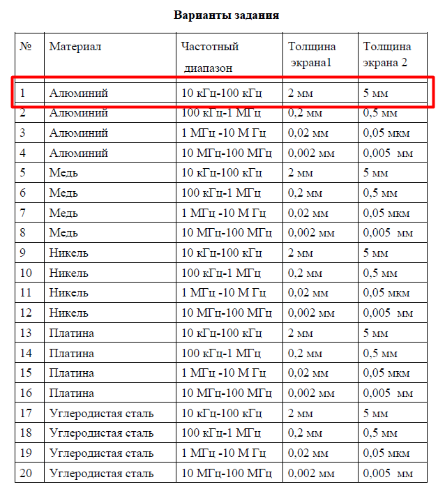 Лабораторная работа 3: Исследование методов защиты от ЭМИ и ЭМП вариант 1