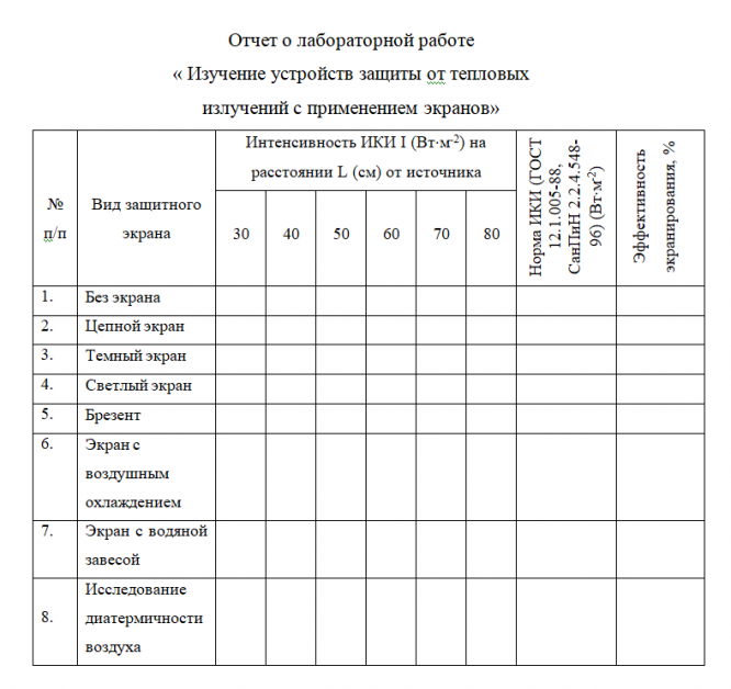Лабораторная работа 4: Изучение устройств защиты от тепловых излучений с применением экранов вариант 1