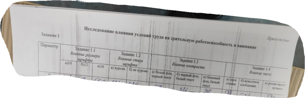 Лабораторная работа 14: Влияние условий труда на зрительную работу