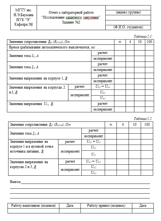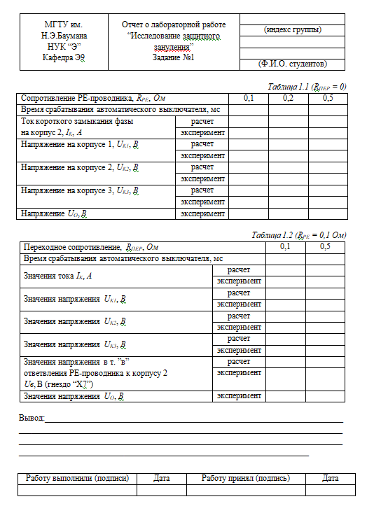 Для студентов МГТУ им. Н.Э.Баумана по предмету Безопасность жизнедеятельности (БЖД и ГРОБ или ОБЖ)Исследование защитного зануленияИсследование защитного зануления