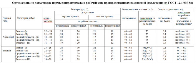 - Можно выбрать ЛЮБОЙ вариант для Задания №2 и Задания №3 из лабораторной работы и ЛЮБЫЕ допустимые нормы микроклимата в рабочей зоне производственных помещений из таблицы.