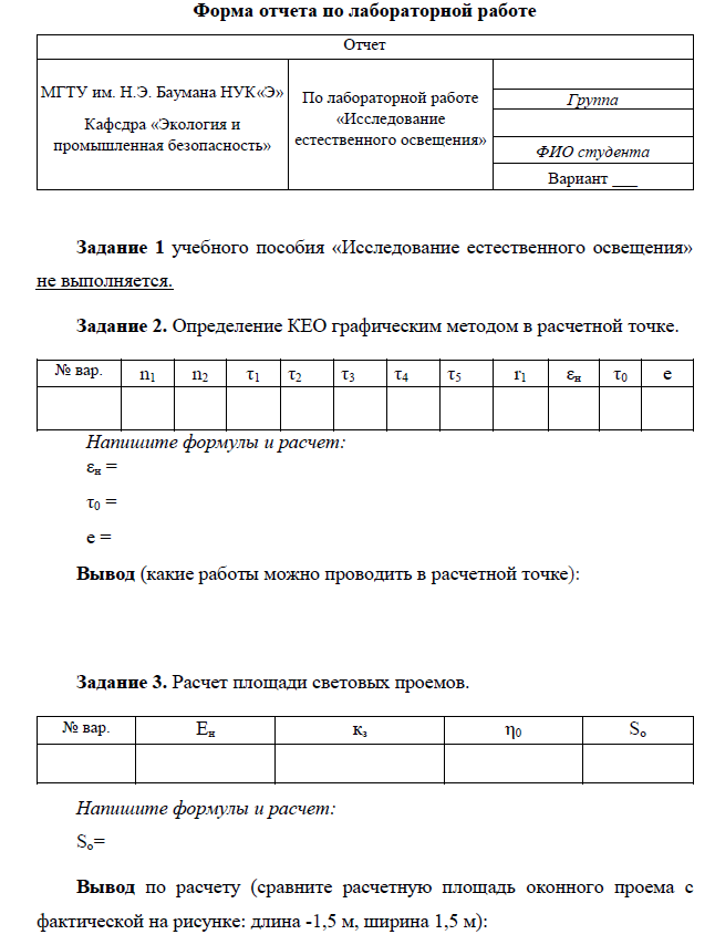 Для студентов МГТУ им. Н.Э.Баумана по предмету Безопасность жизнедеятельности (БЖД и ГРОБ или ОБЖ)Исследование естественного освещенияИсследование естественного освещения
