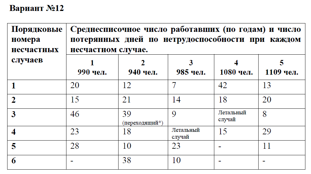 Лабораторная работа 15: Анализ производственного травматизма вариант 12