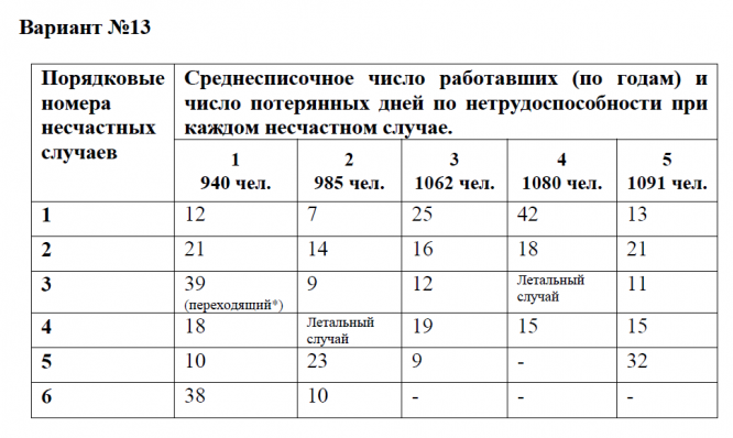 Лабораторная работа 15: Анализ производственного травматизма вариант 13