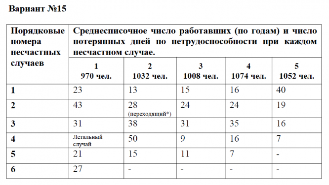 Лабораторная работа 15: Анализ производственного травматизма вариант 15