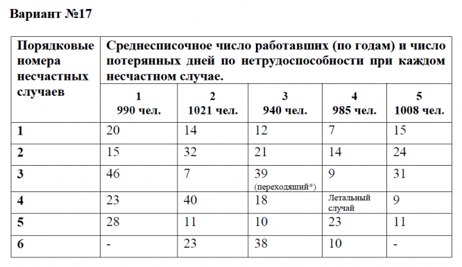 Лабораторная работа 15: Анализ производственного травматизма вариант 17