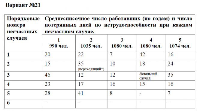 Лабораторная работа 15: Анализ производственного травматизма вариант 21