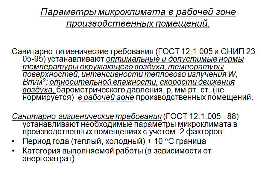 Лекции: Нормализация параметров воздуха рабочей зоны