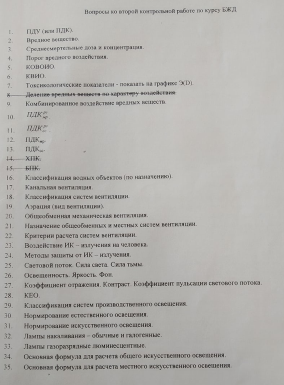 Вопросы/задания к контрольной работе: Вопросы к контрольной работе №2 по курсу "Безопасность жизнедеятельности"