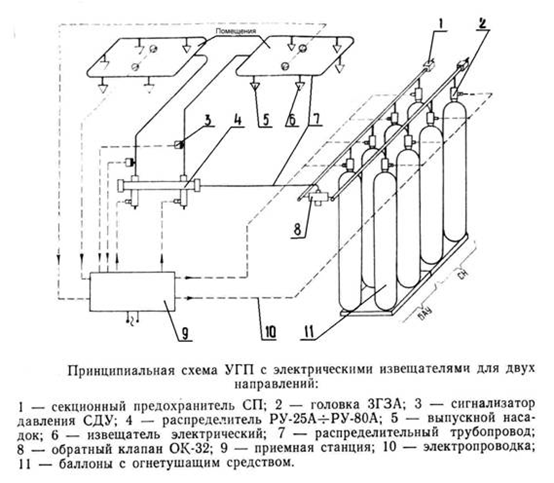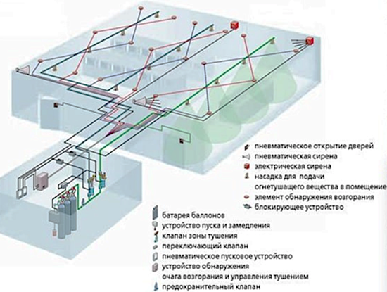 ШАГ 1. Описание системы.Комплекс оборудования включает в себя баллоны - ресиверы с газовыми смесями, пусковые и наборные секции, трубопроводы, распределительные и выпускающие устройства, оповещатели, станции, извещатели. Выброс газа осуществляется через специальные насадки на конце трубопроводов, смесь выделяется под давлением, быстро заполняет помещение, прекращая процесс горения. Запуск системы происходит 3 способами: основным является автоматический пуск, осуществляемый после срабатывания установки/системы. Дистанционный, что выполняется дежурным персоналом предприятия/организации, сотрудниками службы охраны. И ручной.