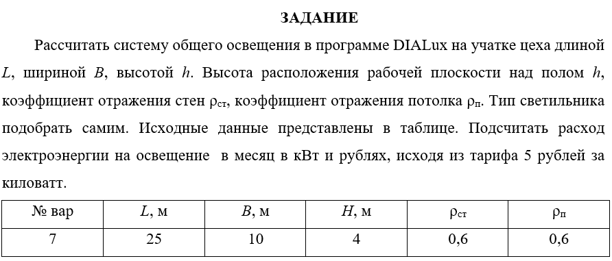 ДЗ 1, 2: Вариант 7 - Расчет в системе DIALux вариант 7