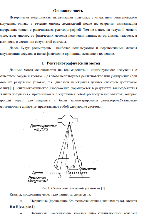 Создание изображений внутреннего анатомического строения и функций человеческого тела является фундаментальным для медицинской науки. Диагностика заболеваний, лечение и управление терапевтическими процедурами опираются на данные, полученные медицинской визуализацией. Эта необходимая информация может быть наиболее точно получена при помощи физических методов. Именно этим меня заинтересовала данная тема. Однако мне захотелось не только получить общую информацию о физических принципах, основных законах, по которым работает большинство диагностических приборов, но и найти им применение в ангиографии. По данным ВОЗ от 2020 года смертность от сердечно - сосудистых заболеваний ежегодно составляет около 17.5 млн. человек. А так как вовремя поставленный диагноз значительно упрощает лечение и практически исключает возможность летального исхода, развитие методов визуализации сосудов и создание впоследствии на их основе биотехнических систем не потеряют свою актуальность в ближайшие годы.