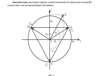 координат. За период кардиоцикла Т=1 с конец вектора D совершает движение по кардиоиде во