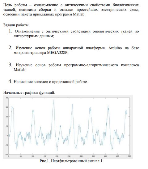 Цель работы – ознакомление с оптическими свойствами биологических тканей, основами сборки и отладки простейших электрических схем; освоении пакета прикладных программ Matlab.