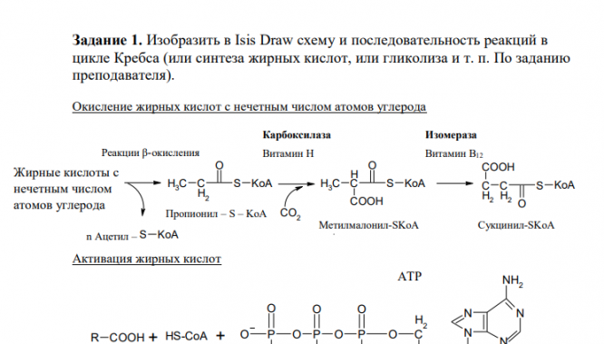 Задание 1. Изобразить в Isis Draw схему и последовательность реакций в цикле Кребса (или синтеза жирных кислот, или гликолиза и т. п. По заданию преподавателя)