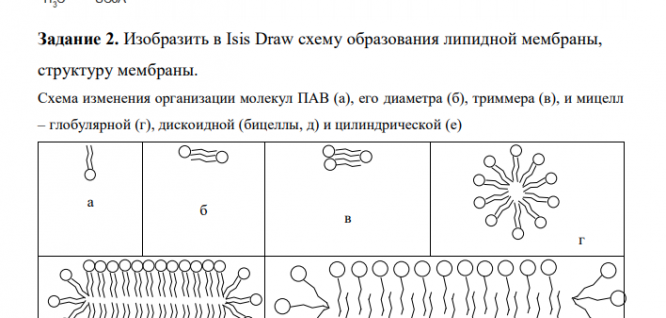 Задание 2. Изобразить в Isis Draw схему образования липидной мембраны, структуру мембраны.
