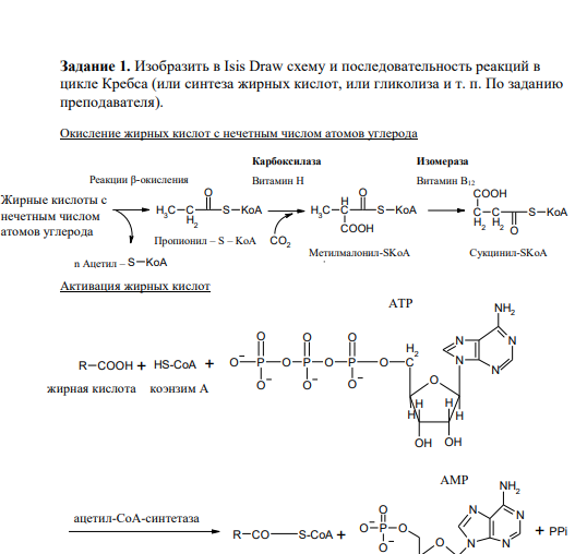 Задание 1. Изобразить в Isis Draw схему и последовательность реакций в цикле Кребса (или синтеза жирных кислот, или гликолиза и т. п. По заданию преподавателя)