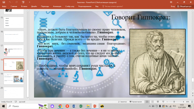 В данной работе 20 слайдов, пригодится не только для школьников 10-11 класс, но и для студентов медколледжа.Данная работа выполнялась для 1 курса медицинского колледжа.![]()