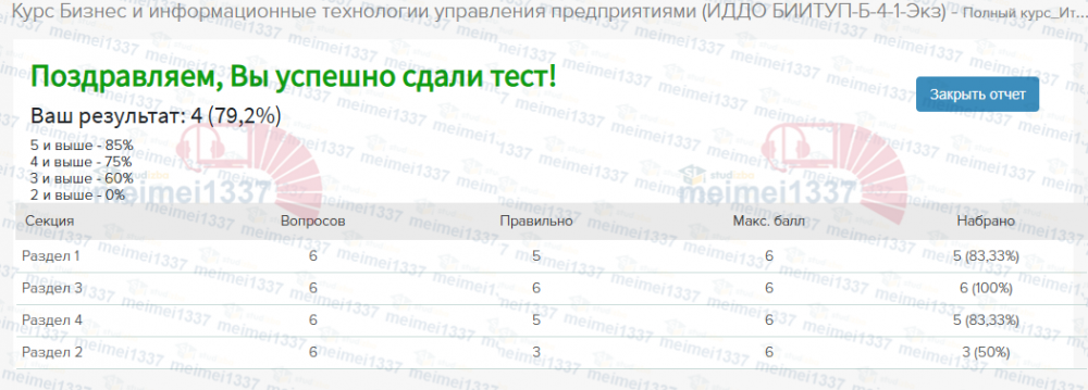 Курс Бизнес и информационные технологии управления предприятиями - база ответов к тестам: