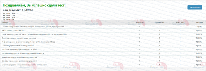 Ответы к заданиям КМ-3: КМ-3. Информационные системы в управлении предприятия. Тестирование - 90.9%