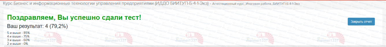 Курс Бизнес и информационные технологии управления предприятиями - база ответов к тестам: