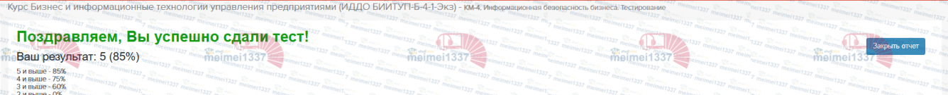 Бизнес и информационные технологии управления предприятиями - КМ-4. Информационная безопасность бизнеса. Тестирование - 85%