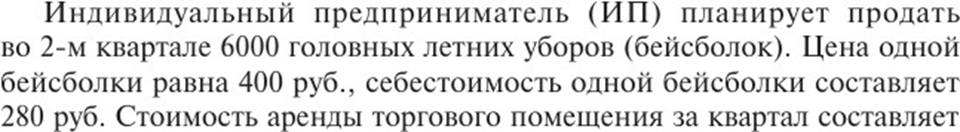 Известно, что организация оказывает консультационные услуги по открытию и ведению малого бизнеса. В организации работают трое сотрудников. Продолжительность одной консультации – 1 час. Стоимость консультации – 400 руб. Арендная плата за помещение с учетом коммунальных платежей – 60 тыс. руб. за месяц. Отдельно оплачивается электроэнергия. Ежемесячный платеж составляет 3500 руб. Расходы на канцтовары и бумагу – 12 тыс.руб. в месяц. Стоимость приобретенной копировальной и компьютерной техники в текущем году – 160 тыс.руб. с НДС, срок службы 3 года. Стоимость мебели в офисе – 240 тыс.руб. без НДС, срок службы 5 лет.