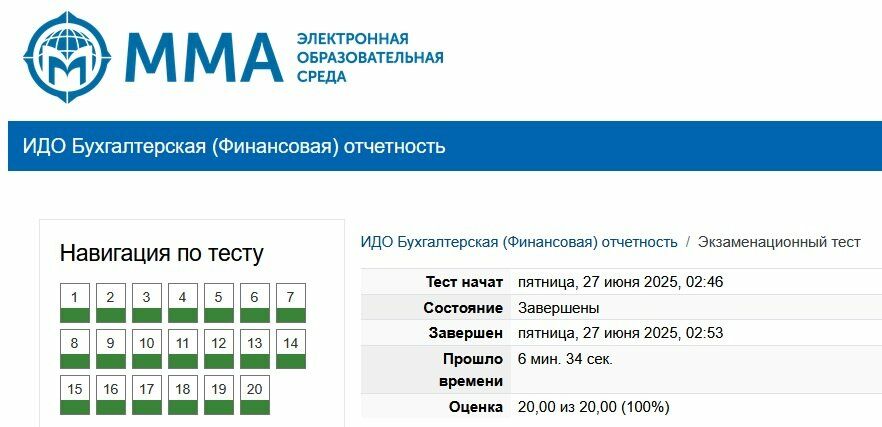 Сборник ответов к экзаменационному тесту Бухгалтерская (Финансовая) отчетность ММА.