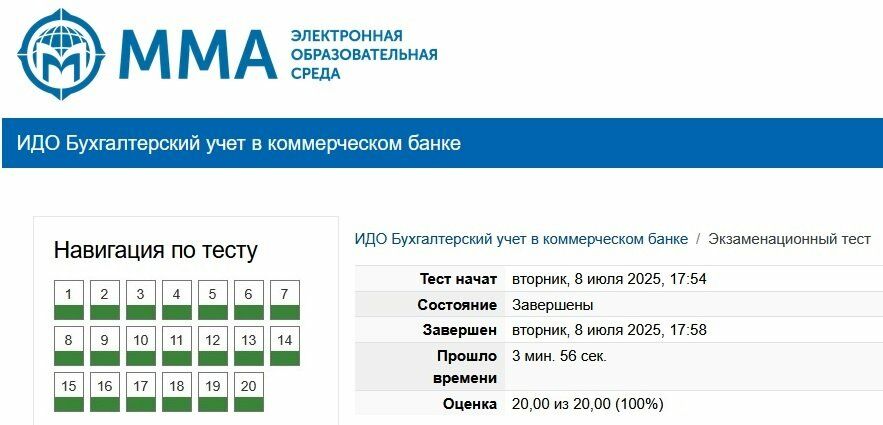 Сборник ответов к экзаменационному тесту Бухгалтерский учет в коммерческом банке ММА.