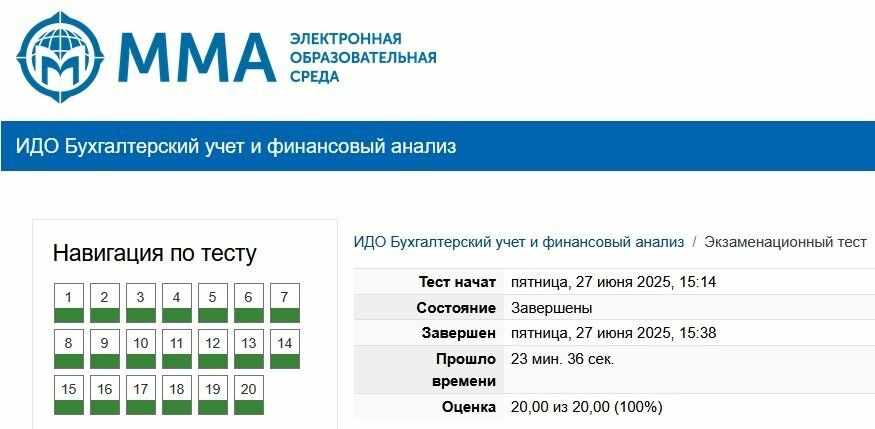 Сборник ответов к экзаменационному тесту Бухгалтерский учет и финансовый анализ ММА.