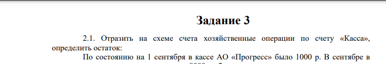2.1. Отразить на схеме счета хозяйственные операции по счету «Касса», определить остаток: