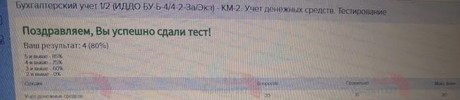 Курс Бухгалтерский учет 1/2 - КМ-2. Учет денежных средств. Тестирование