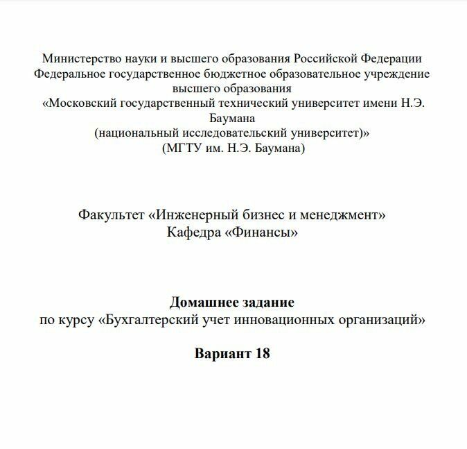 Для студентов МГТУ им. Н.Э.Баумана по предмету Бухгалтерский учетВариант 18 - ДЗВариант 18 - ДЗ