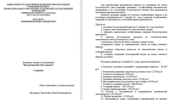 Для студентов МГТУ им. Н.Э.Баумана по предмету Бухгалтерский учетДомашнее задание по дисциплине бухгалтерский учёт Вариант 5Домашнее задание по дисциплине бухгалтерский учёт Вариант 5