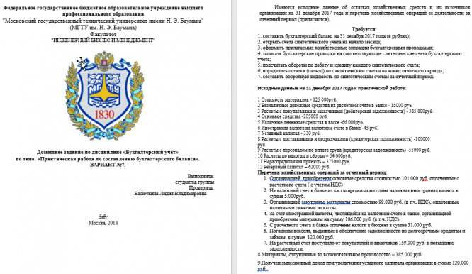Для студентов МГТУ им. Н.Э.Баумана по предмету Бухгалтерский учетДомашнее задание по дисциплине бухгалтерский учёт Вариант 7Домашнее задание по дисциплине бухгалтерский учёт Вариант 7