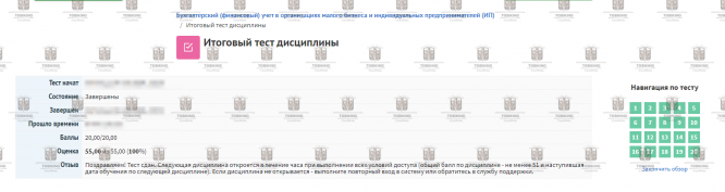 Итоговое тестирование к курсу "Основы организации бухгалтерского учета и внутреннего контроля в организациях малого бизнеса и индивидуальных предпринимателей (ИП)"