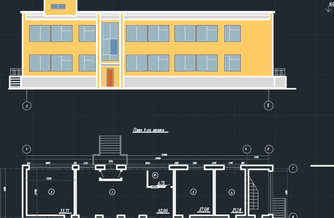 Для студентов СКГМИ (ГТУ) по предмету ЧерчениеЧертеж "Комбинат бытового обслуживания"Чертеж "Комбинат бытового обслуживания"