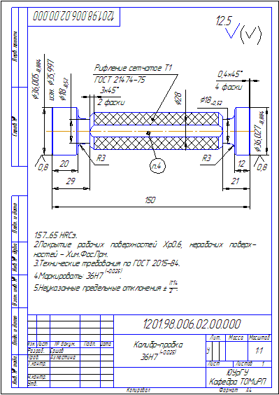 Задача: Начертить Калибр-пробка 36H7 в программной среде Компас 13 или более поздней версии.Чертёж курсовой либо