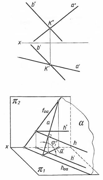 Для студентов по предмету Черчение29. Через точку К провести горизонталь и фронталь заданной29. Через точку К провести горизонталь и фронталь заданной
