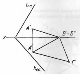 Задача: 41. Достроить фронтальную проекцию треугольника ABC, плоскость которого перпендикулярна к заданной плоскости