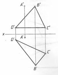 Задача: 55. Определить расстояние от точки А до плоскости треугольника BCD, применив способ замены плоскостей