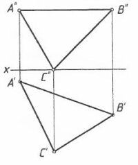 Задача: 56. Построить проекции центра окружности, вписанной в треугольник АВС, используя способ замены плоскостей