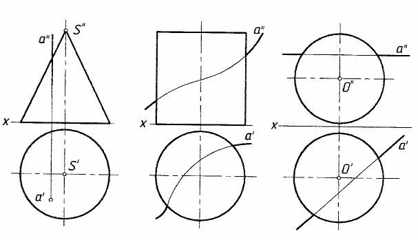 Задача: 75. Построить проекции точек пересечения линии а с заданными