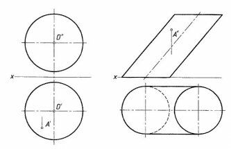 78. В точке А, принадлежащей заданной поверхности, построить проекции касательной плоскости и нормали к этой поверхности.