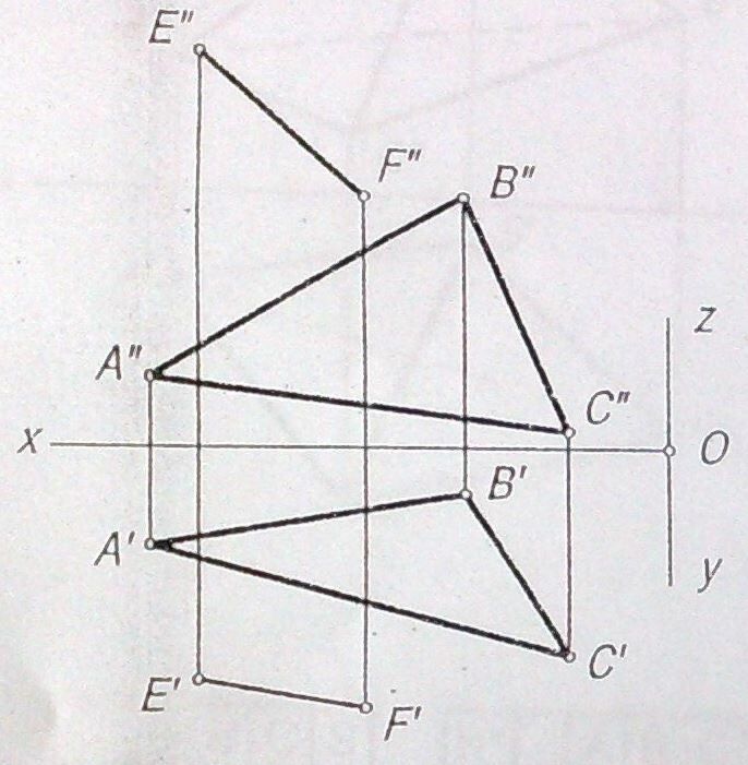 Задача 2. Вариант 9. Построить пирамиду SABC при условии, что её высота равна 80 мм, а вершина S принадлежит прямой EF. Решить без преобразования чертежа.