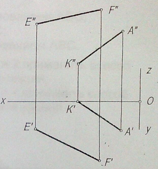 Построить куб ABCDA1B1C1D1 при условии, что вершина В лежит на прямой EF, а сторона AD - на прямой АК.