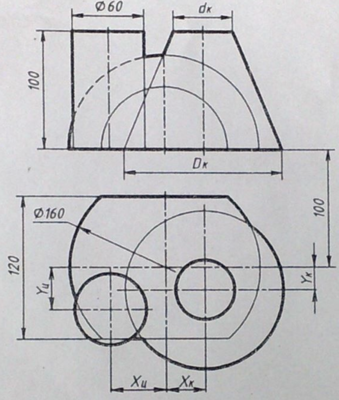DK = 140; dK = 50; XK = 40; YK = 20; XЦ = 40; YЦ = 40.