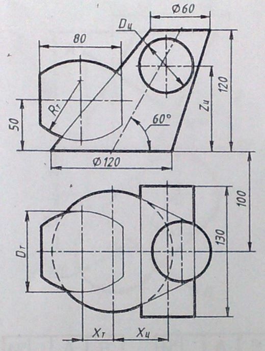 Dт = 80; Rт = 60; Хт = 30; Dц = 60; Хц = 55; Zц = 85.