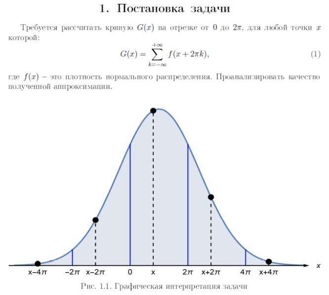 Главная » Учебные материалы » Численные методы для уравнений математической физики » Курсовые работы » МГТУ им. Н.Э.Баумана » 6 семестр » Аппроксимация кривой, полученной из плотности нормального распределения путем накопления значений на интервалах длиной 2пи
