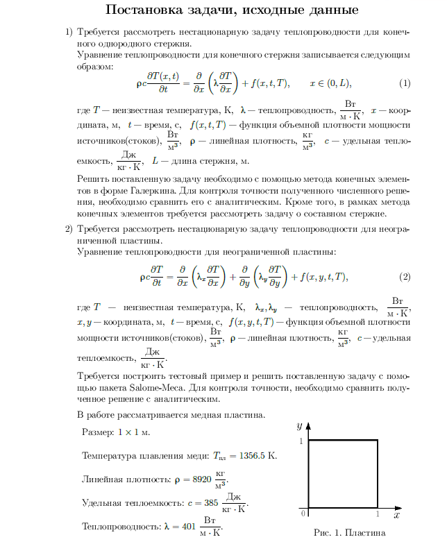 Для студентов МГТУ им. Н.Э.Баумана по предмету Численные методы для уравнений математической физикиРешение задач теплопроводности методом конечных элементов и с помощью пакета Salome-MecaРешение задач теплопроводности методом конечных элементов и с помощью пакета Salome-Meca
